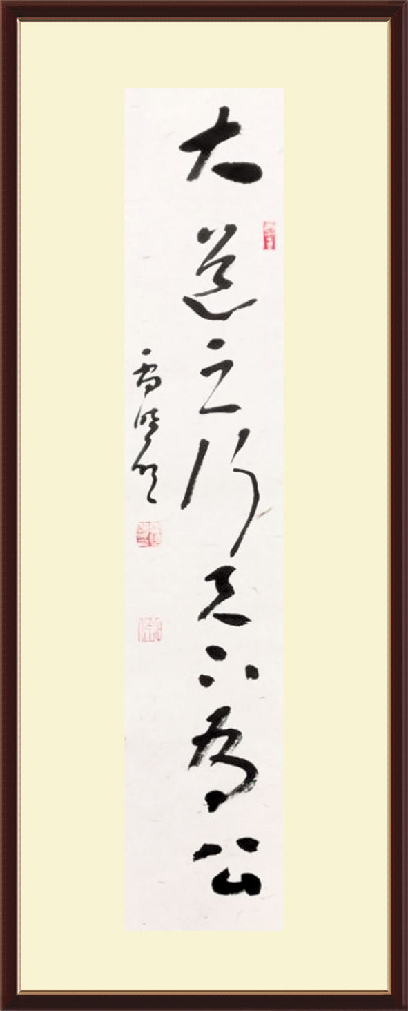 雷曉明的書法初宗唐楷,旁涉漢隸北碑,繼習二王、米芾、王鐸,楷、隸、行、草諸體皆能,尤喜章草。章草是隸書的直接衍生,是今草的前身,始于漢初,章草簡化蠶頭,保留燕尾,章草的橫筆和捺筆還保持著隸書的波蕩狀態(tài),筆筆之間也常有牽引,但字字獨立,簡樸高古。雷曉明認為,章草這種古拙書風符合自己“簡古、簡淡、簡雅”的審美追求。在這些年里他對章草的喜愛幾乎到了狂熱的程度,常常在幾案前一站就是三四個小時。同時,雷曉明在專攻章草的道路上,經常請名師指點,提升書法理念,錘煉書法技法。多年的努力,雷曉明的書藝漸入佳境,其作品風格剛勁質樸,用筆用墨純正,渾厚有底蘊,靜默有靈性。
