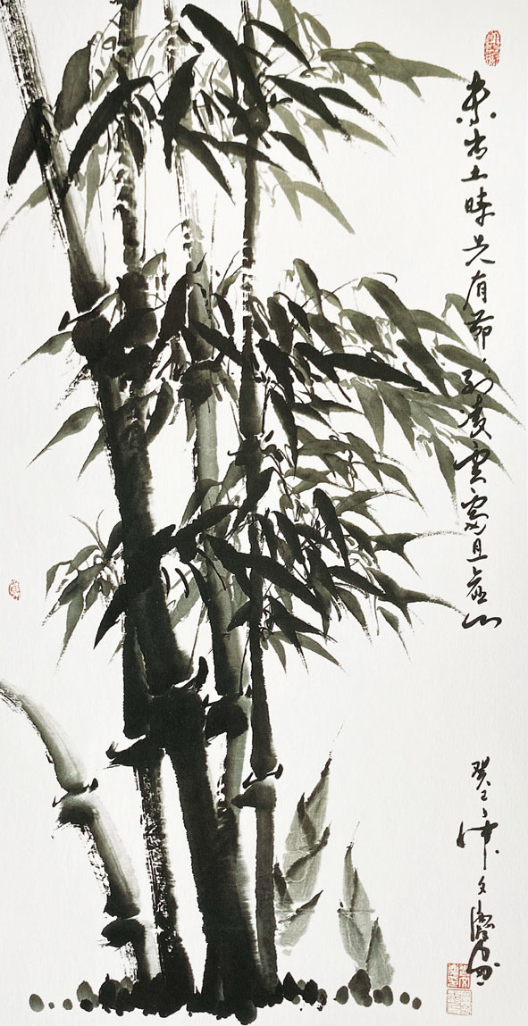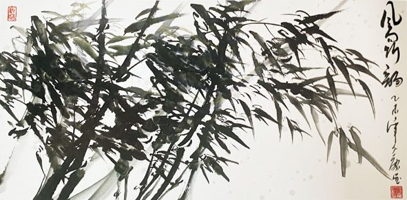 劉文慶對(duì)中國(guó)寫意畫頗有研究,并進(jìn)行了長(zhǎng)期的藝術(shù)哲學(xué)上的思考。嚴(yán)格意義上講,中國(guó)畫是“主觀”的,其基本因素,就是“線條、墨”,其形式就是書法線的筆道與墨呈五色的藝術(shù)效果,以色彩點(diǎn)綴、以點(diǎn)線提……方得畫之筆韻。文慶所畫以書法入畫,長(zhǎng)期的臨池之功所養(yǎng)成把生命力融入點(diǎn)畫的能力,這一點(diǎn)至關(guān)重要。同時(shí)又將攝影的“光、影”之美大膽的融入寫意畫中,使他的畫充滿了特有的透視美學(xué)意趣。其畫面布局、構(gòu)圖多來自“攝影家眼晴”的選擇,這或許是文慶繪畫最突出的特色。