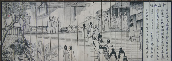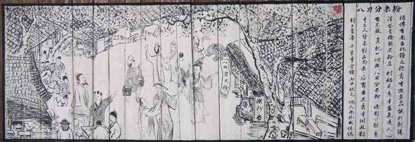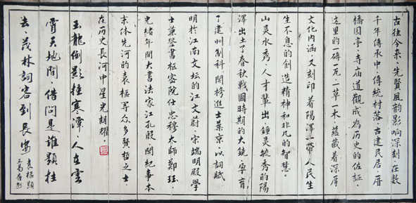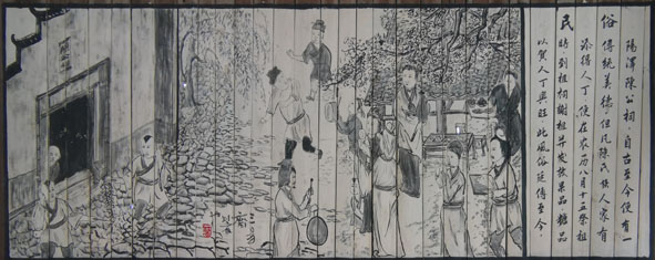 這些圖文并茂的畫,反映名人軼事的有:袁樞著書、村民捕虎、葉京、江文蔚、江禮殷等;反映名勝古跡的有:陽(yáng)澤烈士陵園、江公祠、明清古民居;反映特產(chǎn)和民俗的有:八刀分米粉、岐山廟會(huì)等,可以說小橋鎮(zhèn)的文化旅游景觀節(jié)點(diǎn)與亮點(diǎn)都集中在這里,也可以說是小橋鎮(zhèn)的十里文化旅游景觀走廊的濃縮版或精華版。