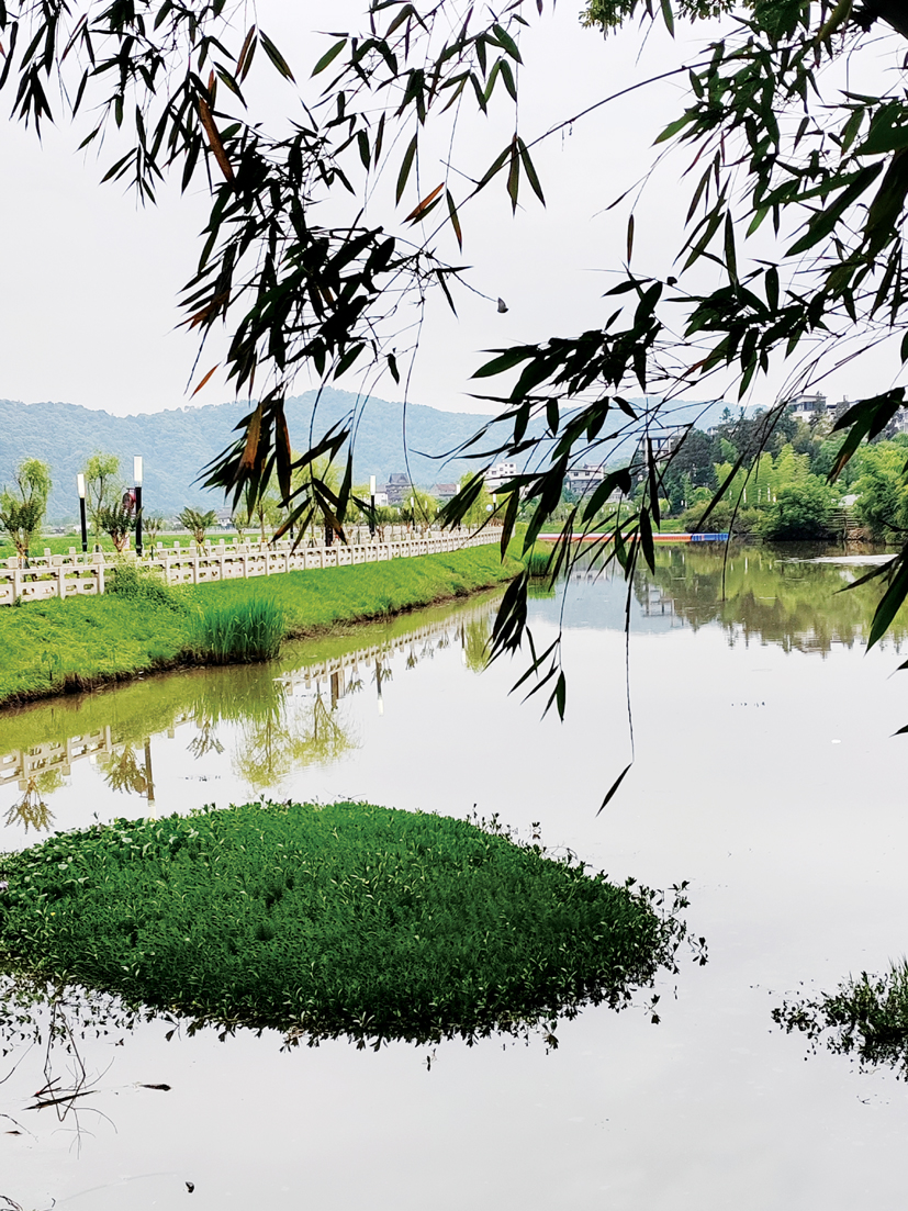 清晨邁步,踏上蜿蜒綿延的沿河棧道,我等仿佛進(jìn)入詩畫的海洋,藍(lán)天與白云,青山與湖水,紅花與綠樹,田野與村莊串連一體,相映成趣,婉如一個(gè)個(gè)曲譜上跳動(dòng)的音符,吟唱于山水之間。湖面,飄渺著青莎,裊娜迎人,時(shí)而與魚兒嘻戲,時(shí)而向遠(yuǎn)山招手;山坡上,蒼翠欲滴,霧氣搖曳著朦朧,又像淡雅的絲綢,半醒半夢(mèng)地纏繞在山的腰際,山水各色,交輝相映,美侖美奐,美不勝收。