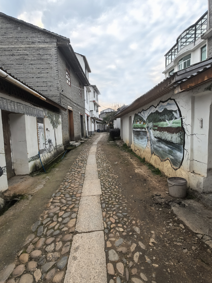 正午時分,我等且行且思,隨風(fēng)起,抬頭眺望,土褐色的泥墻,渡著一片片冬日的暖陽,一叢叢、一簇簇或淡紅,或淺黃的光影在匆匆忙忙行走,斑駁的紋理肆意縱橫,書寫的分明是歲月的輪廓與滄桑;小巷深處,回首相望,多少發(fā)小、兄弟,都已漸行漸遠(yuǎn),過去人聲鼎沸的幾個大戶人家,也是一片岑寂荒涼,唯有梁上的呢喃,似曾相識,不老的燕子不驚不怕,低頭與我們對視,又高傲地抬起頭來,巷尾的斷壁殘垣下是幾個形影相吊的老人佝僂著背影,幾只黃狗“汪汪〞的叫聲,如最后的守望者。