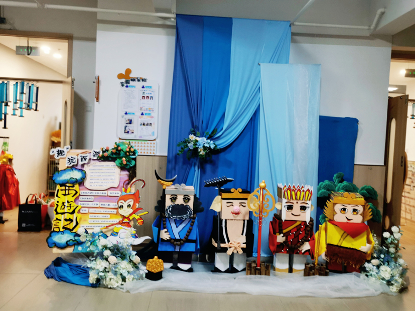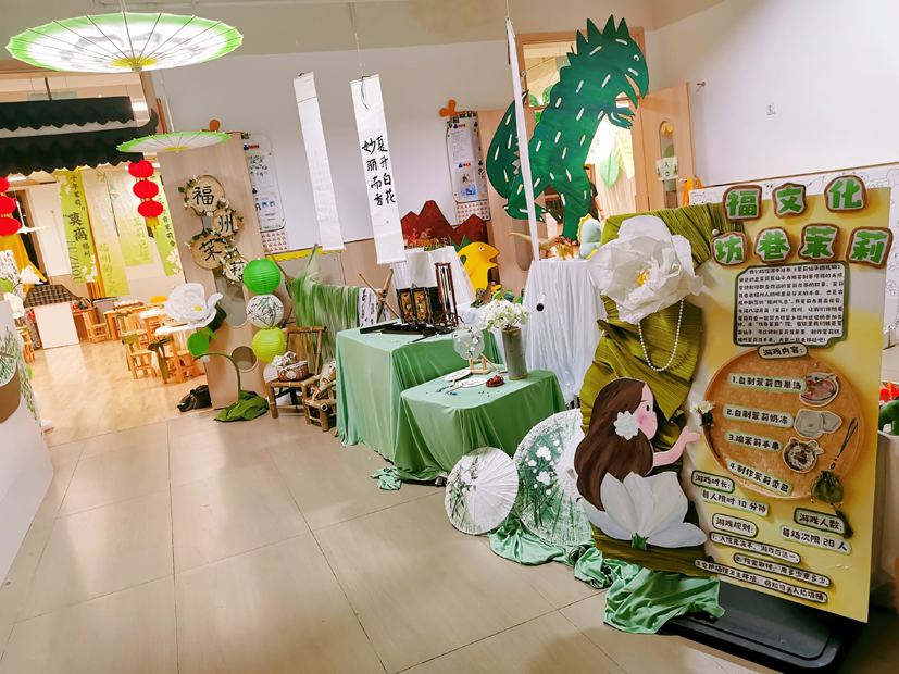 幼兒園為孩子們打造了12個各具特色的“故事游園館”,引導孩子們在《小蝌蚪找媽媽》《西游記》等經典童話故事中感受真、善、美;在閩都故事、福文化故事中了解福州的民俗文化,萌發愛家鄉的情感;在《雞毛信》等紅色故事中感受英雄的力量……