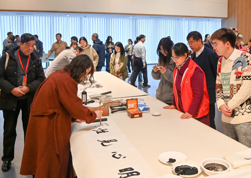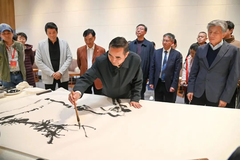 參觀展覽后,范迪安為書畫筆會活動開筆。