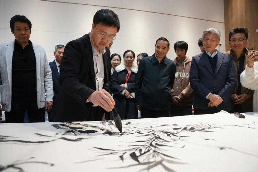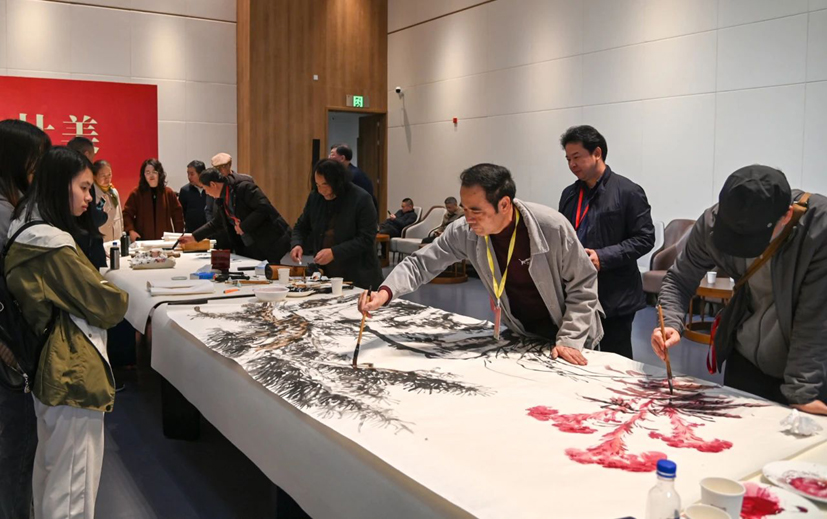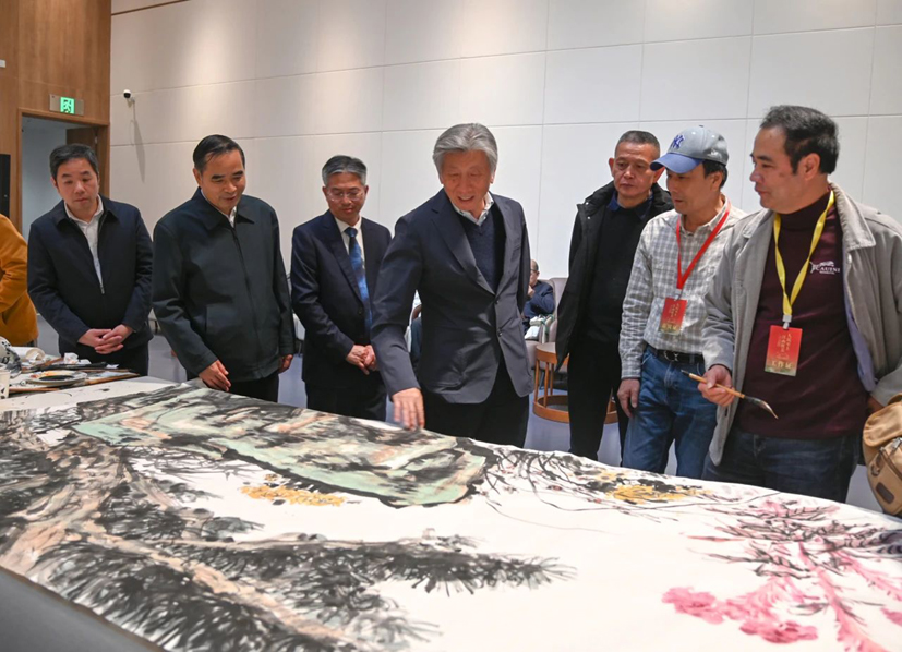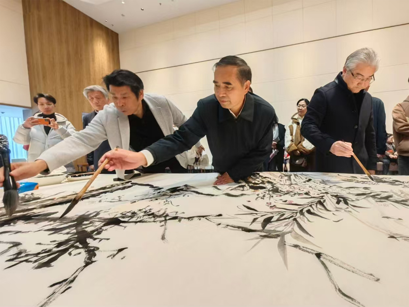 范迪安、葉雙瑜、王來文、張永海、陳春勇等現場共同創作了8尺畫作《盛世迎春》。
