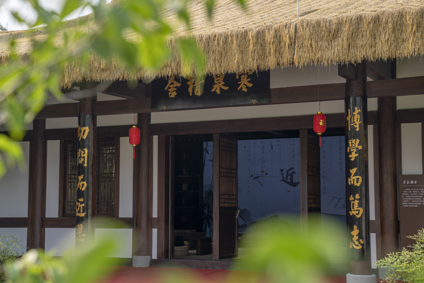 從馬伏出來向東,路邊的稻田,是被綠意侵染的詩行,水洼倒映著天光云影,一個轉(zhuǎn)角,抖落煙灰的剎那,我等便來到了位于后山鋪的“寒泉精舍”。漫步精舍內(nèi),幾間古樸的茅屋,屋頂?shù)拿┎荩陉柟庹找路褐慕鹕秀遍g看到了朱子在與弟子們坐而論道,朱子的聲音沉穩(wěn)而有力,墻上鑲嵌著的《近思錄》語,猶如一盞盞明燈,照亮了弟子們前行的道路。朱子墻前駐足沉思,同行的友人忽問:“爾等出生理學淵藪,何謂朱子理學,可以一語釋之乎?”。