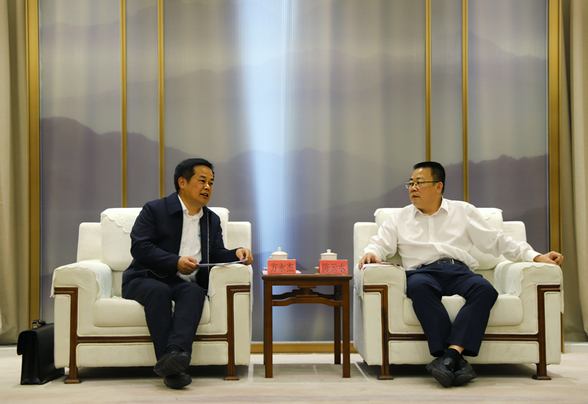 福州市委副書記、福州新區(qū)黨工委書記陳云水與寧波方正股份公司董事長(zhǎng)方永杰座談。