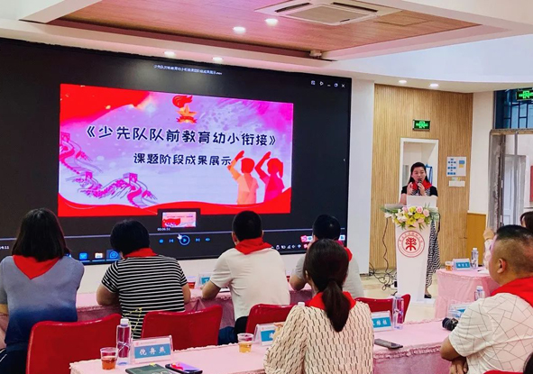 晉安區(qū)“隊前教育幼小銜接”的課題承辦園——晉安區(qū)實驗幼兒園,園長連勝作為課題組副組長對歷時三個多月的課題開展情況進(jìn)行詳細(xì)介紹。通過問卷調(diào)查教師和家長對隊前教育的關(guān)注度、知曉度及認(rèn)可度,聚焦課題開展的三大阻礙,解決隊前教育“六知六會一做”認(rèn)知的不足。通過專家引領(lǐng)、學(xué)習(xí)觀摩、教研探討等形式,根據(jù)幼兒的心理特點,教育形式上創(chuàng)新,教學(xué)內(nèi)容上滿足幼兒的需求,形成了教研集和教學(xué)案例集。