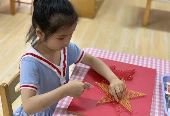 展示區(qū)里開展一分鐘系紅領(lǐng)巾、隊徽拼拼樂,隊前知識競賽、釘板畫等豐富的隊前區(qū)域游戲。