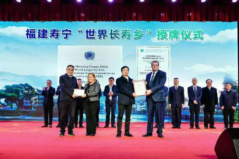 2023年12月16日,福建壽寧“世界長壽鄉(xiāng)”發(fā)布會暨授牌儀式在壽寧縣下黨鄉(xiāng)舉行,聯(lián)合國老齡所向壽寧縣頒發(fā)了“世界長壽鄉(xiāng)”證書和牌匾,世界聯(lián)合國老齡所所長馬文.佛爾摩薩為壽寧縣授證書,同時(shí)還與壽寧縣簽訂戰(zhàn)略合作框架協(xié)議,常務(wù)副所長羅塞塔.法魯軍-邦尼洛授牌匾。楊則貴作為嘉賓參加了大會。福建珍硒生物科技集團(tuán)以壽寧為基地,研發(fā)富硒產(chǎn)品、打造富硒品牌、推動壽寧富硒產(chǎn)業(yè)發(fā)展、助力百姓身體健康所取得的成效,贏得了與會者的贊譽(yù)。