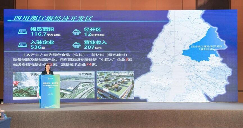 在城市價值推介環節,都江堰市商務和投促局圍繞都江堰市生態優勢、歷史文化、資源稟賦等方面做城市價值推介,向與會企業生動展示了都江堰市優越的資源條件、強勁的市場潛力以及堅實的產業基礎。四川都江堰經濟開發區圍繞綠色食品、新材料、裝備制造及新能源產業開展推介,發布“天府珍水”食品飲料產業園、低空飛行器生產等6大項目機會清單;都江堰精華灌區糧果產業園圍繞全獼猴桃產業鏈、糧菜糧藥產業、農商文旅體康融合發展開展推介,發布都江堰市聚源鎮農商文旅融合、濱河仙草村新質生產力發展基地等10個優質項目需求,誠邀企業參與“農業+智造”融合項目,共享協同發展新機遇。